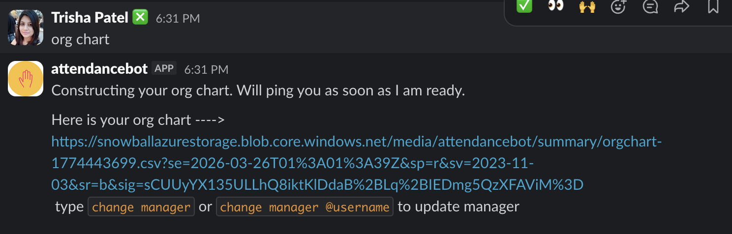 Yes you can! Just type 'org chart' and you'll be able to download the org summary that details who has set up who as their manager.