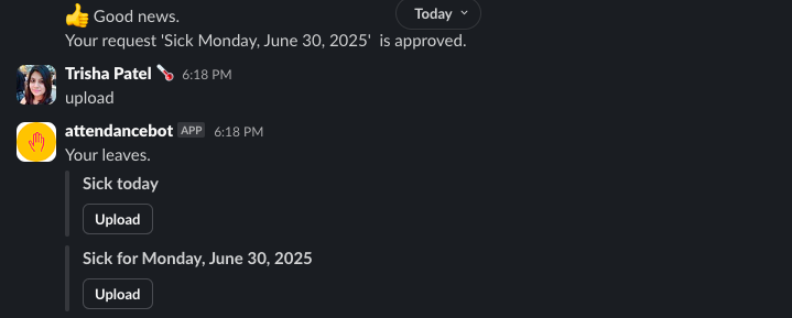 3. After you select upload for the required leave, you will receive a prompt from AttendanceBot which looks something like this