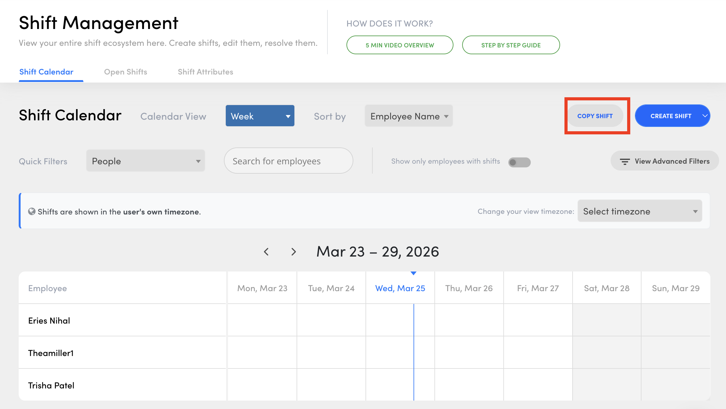 1. Click on the Copy Shift button present right above the shifts view.